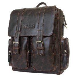 Мужской классический кожаный рюкзак Carlo Gattini Volturno (Вольтурно) выполнен из высококачественной итальянской натуральной кожи типа "Флоттер" темно-коричневого цвета. У этого кожаного рюкзака одно большое отделение, которое затягивается ремешком и закрывается клапаном на замках. Внутри отделения есть карман на молнии и отделения для мелочей. ..