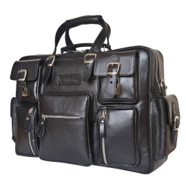 Портфель Rofelle (Рофелле) выполнен из шорной толстой натуральной кожи темно-коричневого цвета.